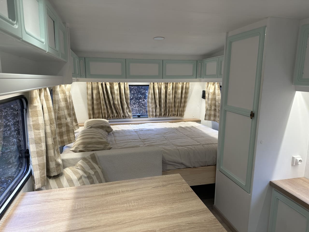 Revenez à l'essentiel et revivez ces souvenirs dans notre caravane vintage, métamorphosée avec une touche moderne et un confort cosy.